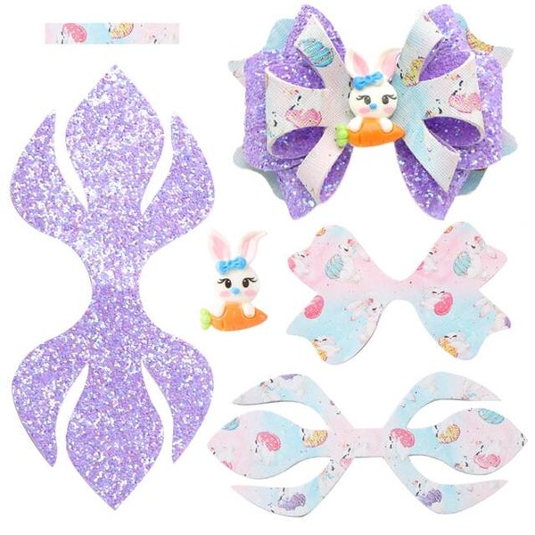 Easter Double Sided Printed Faux Leather DIY Hair Bow Kit